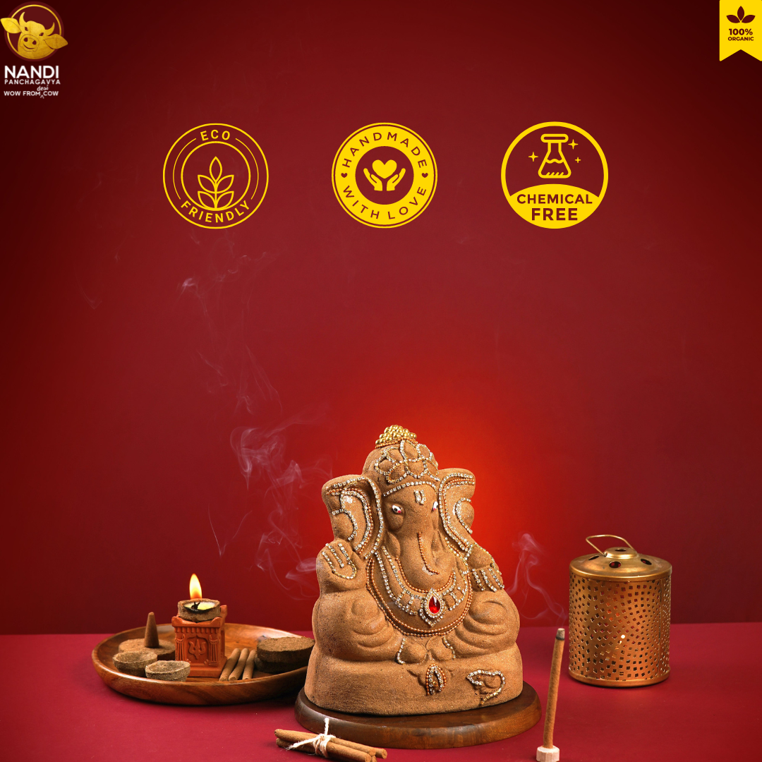 Experience the divine connection with our meticulously crafted Ganesha, honouring tradition while preserving our planet. Our comprehensive Pooja kit and expert Panditji guidance ensure the blissful celebration.