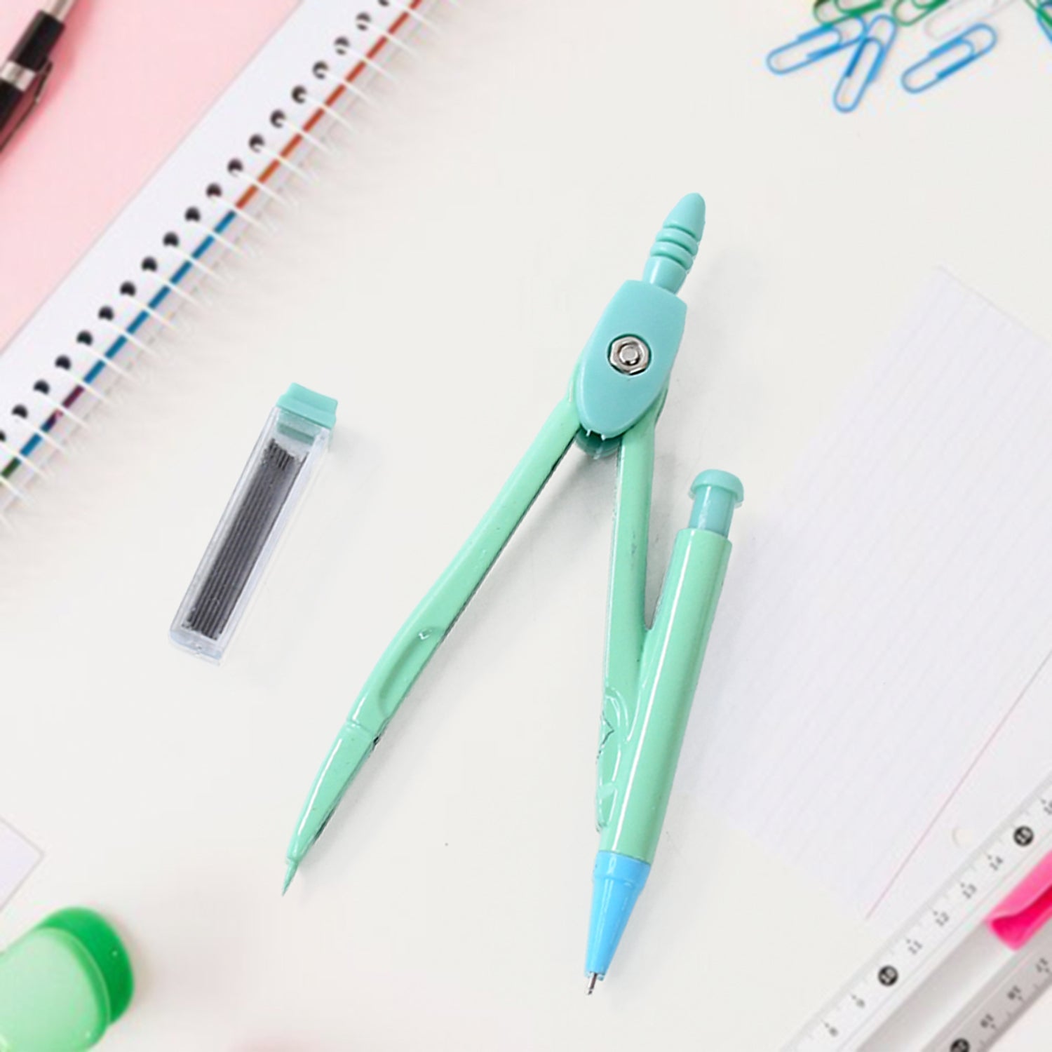 The set comprises a durable metal compass, a mechanical pencil, a tube of lead refills, and a cute case that keeps everything organized and easy to carry. With its colorful and kid-friendly design, this is a perfect gift for school-going children and a must-have addition to any student’s stationery collection.