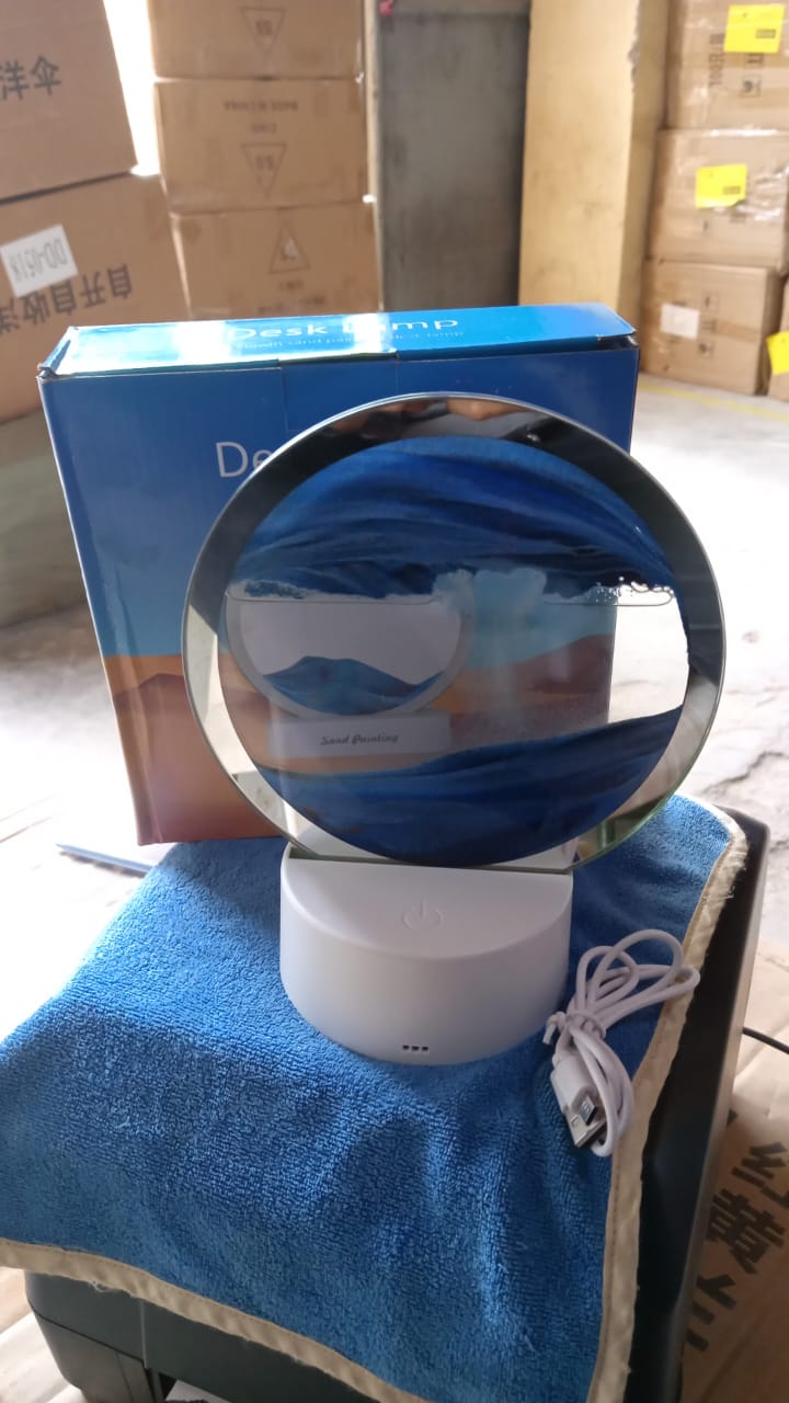 5 Color Light Moving Sand Art Picture Round Glass 3D Deep Sea Sands cape in Motion Display Flowing Sand Frame, Children's Large Desktop Art Toys, Home & Office Desktop Decorations (1 Pc)